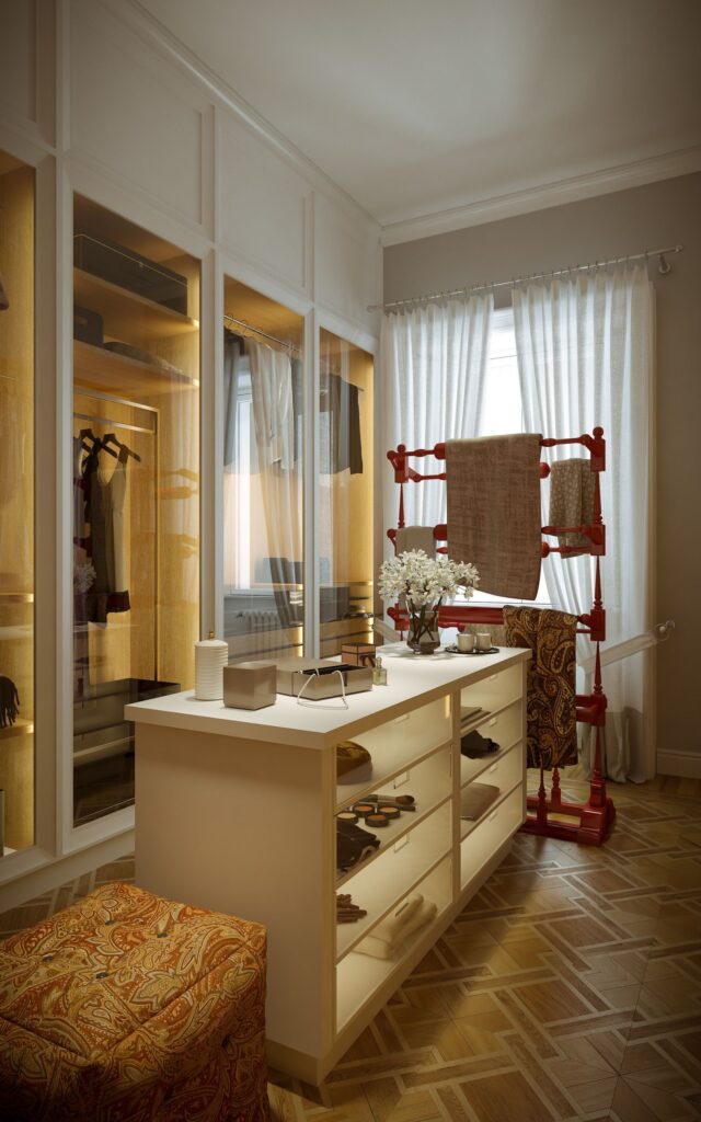 In particular, as for the Walk-in Wardrobe, every render was aimed to offer an overview as close as possible to the final execution. The atmosphere would be cosy. Everything would be well organized. Every wardrobe would be lighted inside by invisible rays. So as to meet the owner’s requirements and tastes, we rendered three different execution options.